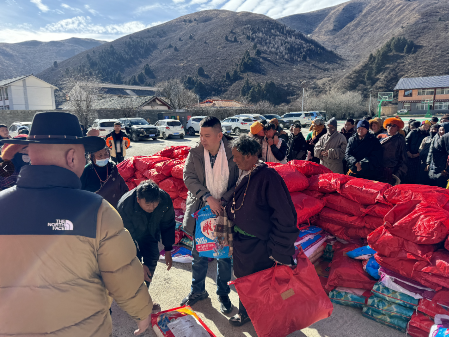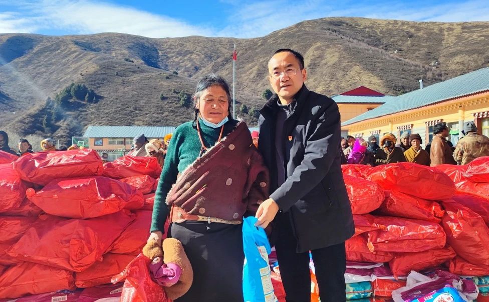 同時通過色達縣水利局向桑桑、德瑪、查啟三村“民族團結(jié)進家庭”96戶牧戶及脫貧戶60戶,共計156戶家庭捐贈生活物資(包含毛毯、大米、洗衣粉)各一套。